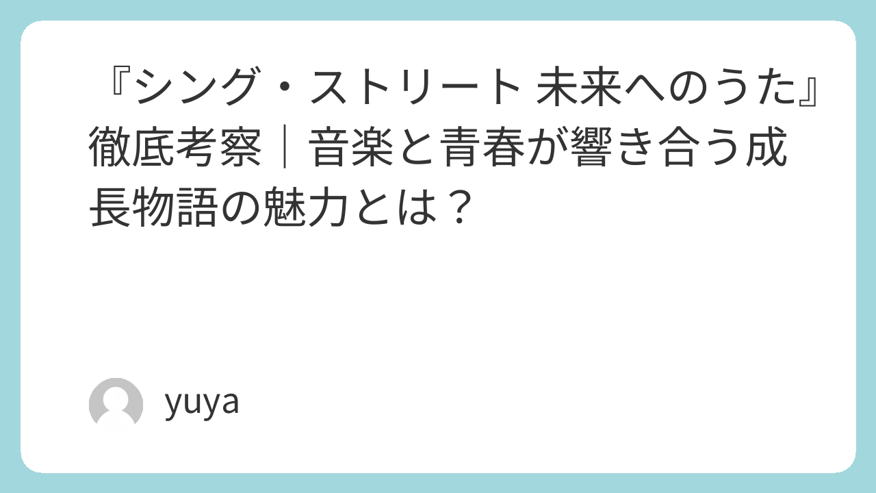 音楽を媒介として、自分自身と向き合い、他者とつながり、社会に立ち向かうという「青春の本質」を、これほど純粋に、かつ力強く描いた映画はそう多くありません。『シング・ストリート』は、すべての夢見る若者と、かつて夢を見た大人たちに捧げられた、最高の応援歌です。