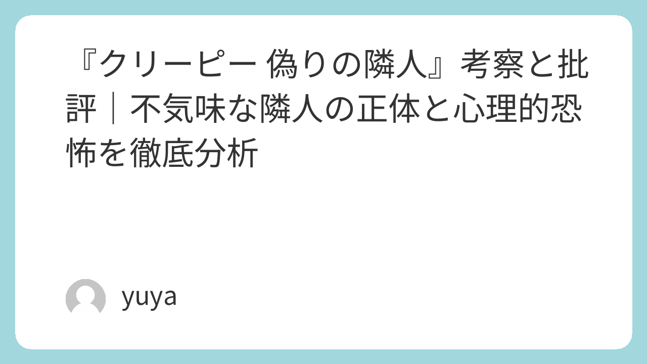本記事では、物語の構造やキャラクター心理、テーマ性、そして考察要素を中心に、深堀りした批評を行います。ミステリーとしての巧妙さ、サイコスリラーとしての完成度、社会に潜む“偽り”について一緒に考察していきましょう。