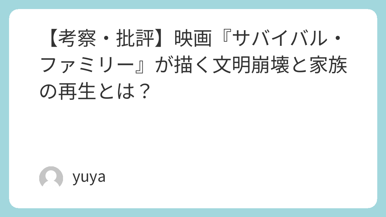 今回は、映画『サバイバル・ファミリー』について、あらすじとともに考察・批評を交えながら、5つの視点で深堀りしていきます。