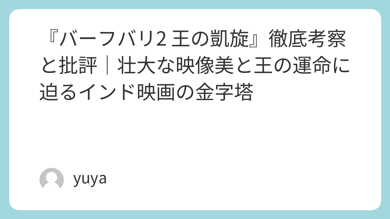 『バーフバリ2 王の凱旋』は、映像・物語・キャラクター・テーマ・感情体験の全てが高次元で融合した奇跡のような作品です。一見派手なアクションファンタジーに見えて、その奥には深い人間ドラマと哲学が潜んでいます。