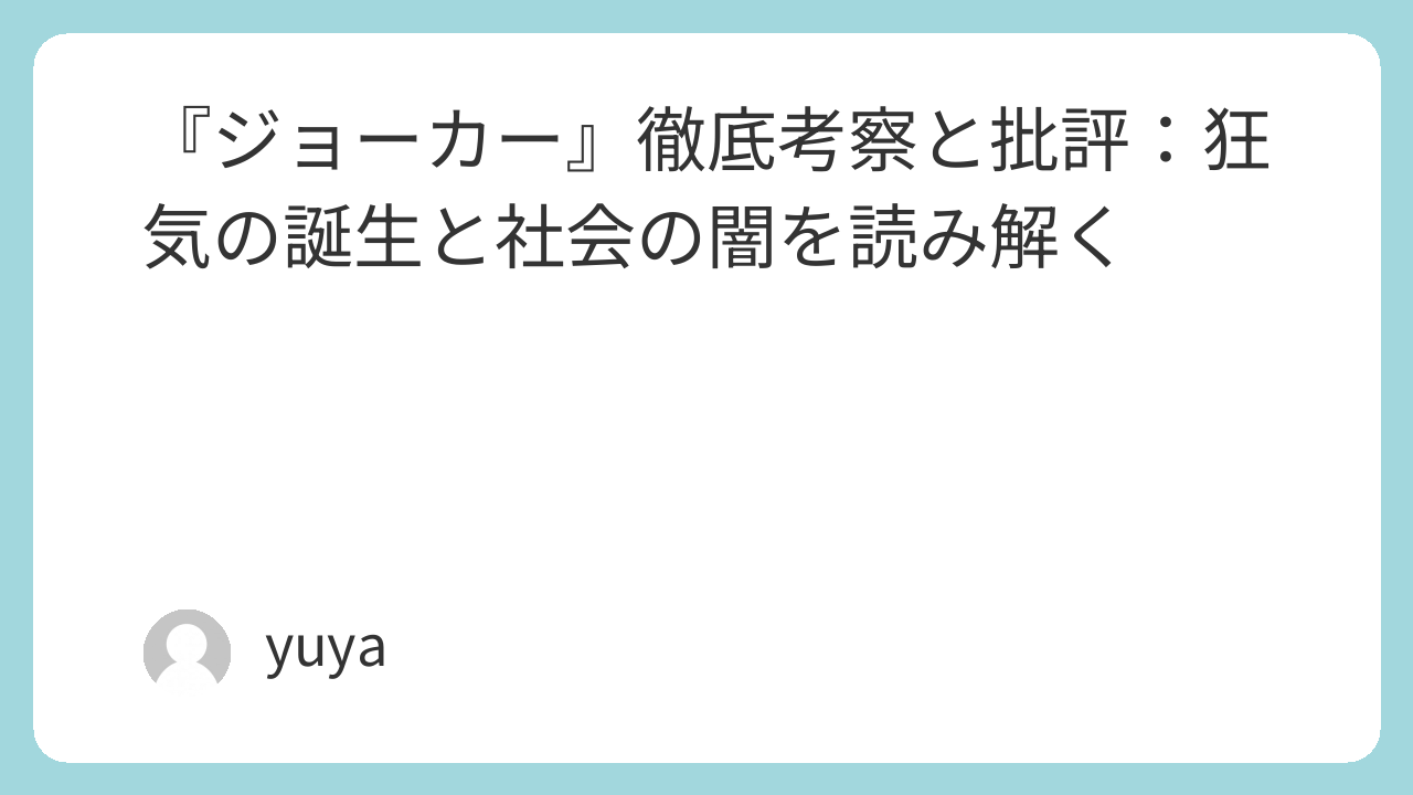 本記事では、映画『ジョーカー』を様々な角度から考察・批評していきます。心理描写、社会的背景、語りの構造、芸術性、そして観客の反応まで、総合的に読み解くことで、この映画の本質に迫ります。
