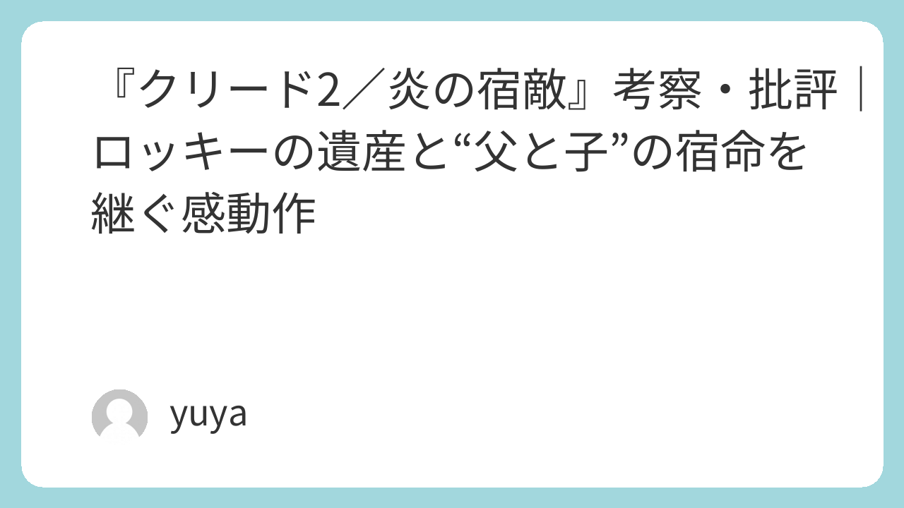 単なる続編にとどまらず、過去作品とのつながりを巧みに織り込みながら、新たなドラマを生み出した本作は、ただのボクシング映画ではなく、親子・師弟・過去との対話を軸にした深い人間ドラマでもあります。本記事では、映画『クリード2/炎の宿敵』を、ストーリー構造・テーマ・キャラクター・演出・批評という5つの観点から総合的に考察・批評します。