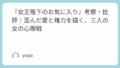 - 自ら「犠牲者」を選ぶことで、彼女は主体性を取り戻したとも言える。