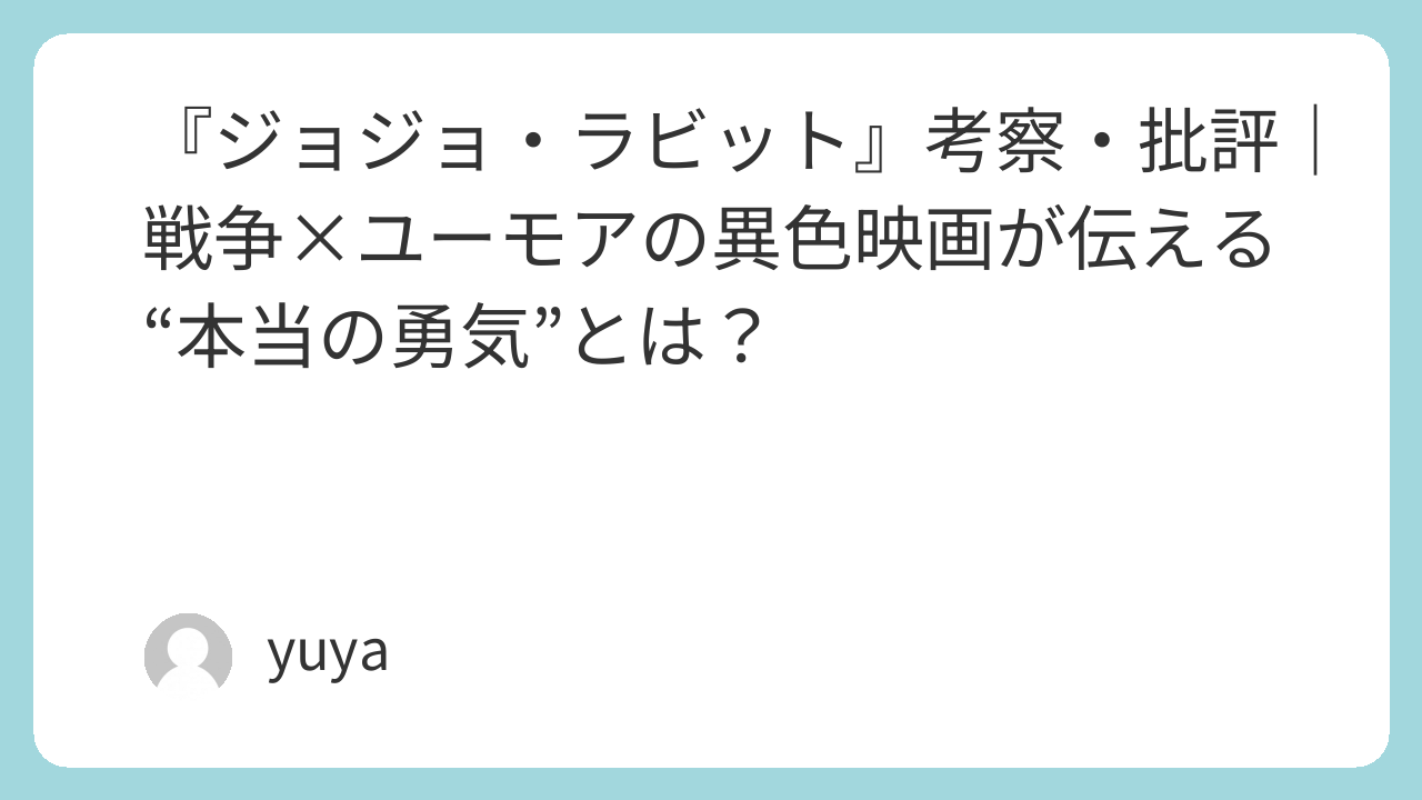 本記事では、そんな『ジョジョ・ラビット』の物語構造、テーマ、演出、キャラクター、象徴表現、さらには批評的受容まで、多角的に掘り下げていく。