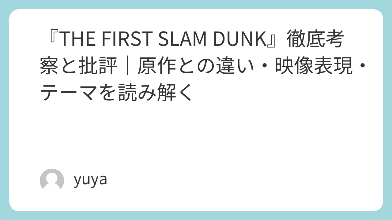 『THE FIRST SLAM DUNK』は、単なる“懐かしさ”を狙った映画ではなく、原作をリスペクトしながらも、まったく新しい切り口で再構築された作品です。リスクを取りつつ挑戦した映像演出とテーマ性は、まさに「THE FIRST」と呼ぶにふさわしい“第一歩”でした。原作ファンには新たな感動を、初心者には普遍的な青春ドラマとして、多くの層に響く作品となっています。
