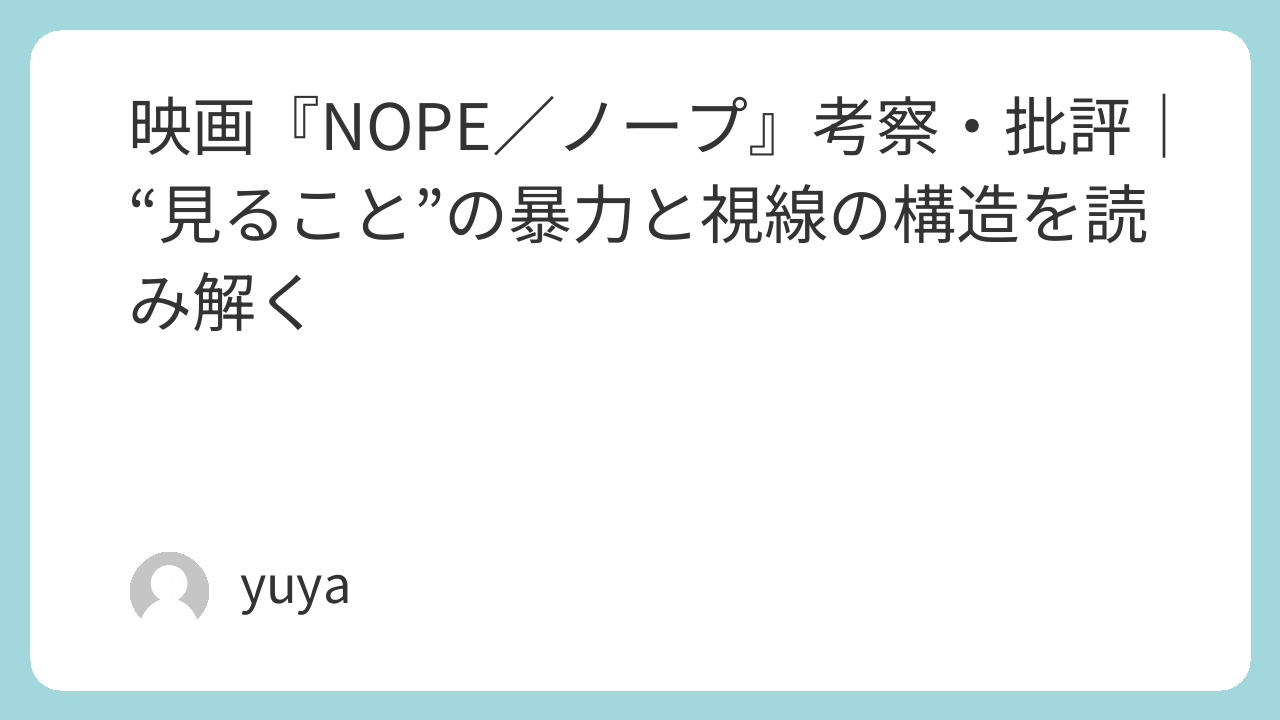 ジョーダン・ピール監督による映画『NOPE/ノープ』(2022)は、単なるSFホラーやスリラーの枠に収まらない、非常に多層的なメッセージを内包した作品です。「見られること」「見ること」に対する執着、暴力、そしてそれを撮影し収益化するエンタメ産業への鋭い批評性——その一つひとつが、観客に問いを投げかけてきます。