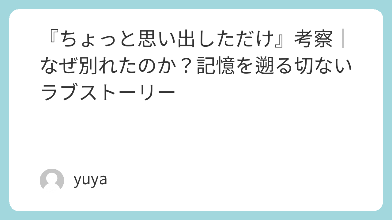 『ちょっと思い出しただけ』は、時間逆行という構造を通じて「記憶」「別れ」「すれ違い」の本質を描いた傑作であり、観終わった後にそっと“自分の過去”を思い出させてくれるような、優しくも切ない映画体験を提供してくれる。