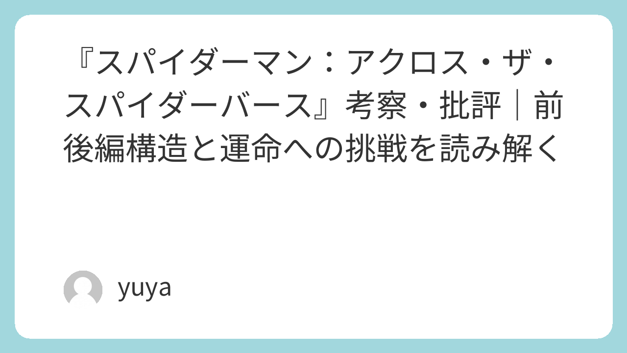 それでもこの作品が示した「自由と運命」「ルールと意志」の対立構造は、次作『ビヨンド・ザ・スパイダーバース』でどのように決着するのか。シリーズの行方を見守る意味でも、本作は“通過点”でありながら非常に重要なピースとなる作品です。