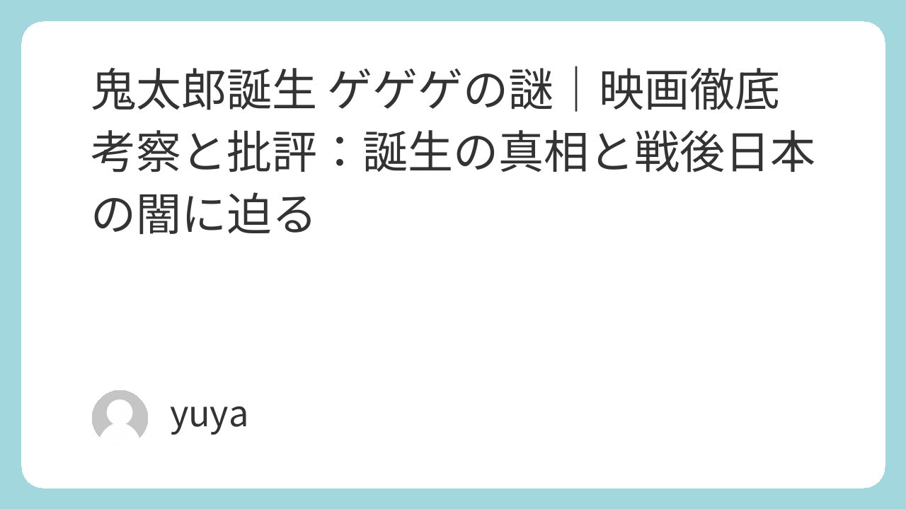 『鬼太郎誕生 ゲゲゲの謎』は、妖怪アニメの枠にとどまらない社会批評性と人間ドラマを兼ね備えた秀作であり、シリーズファンのみならず、映画好き全般に訴求する完成度の高い作品である。