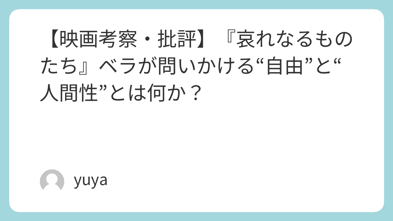 ベラは「生まれ直した人間」として、私たちが前提としている社会的・倫理的な枠組みを揺さぶる存在です。