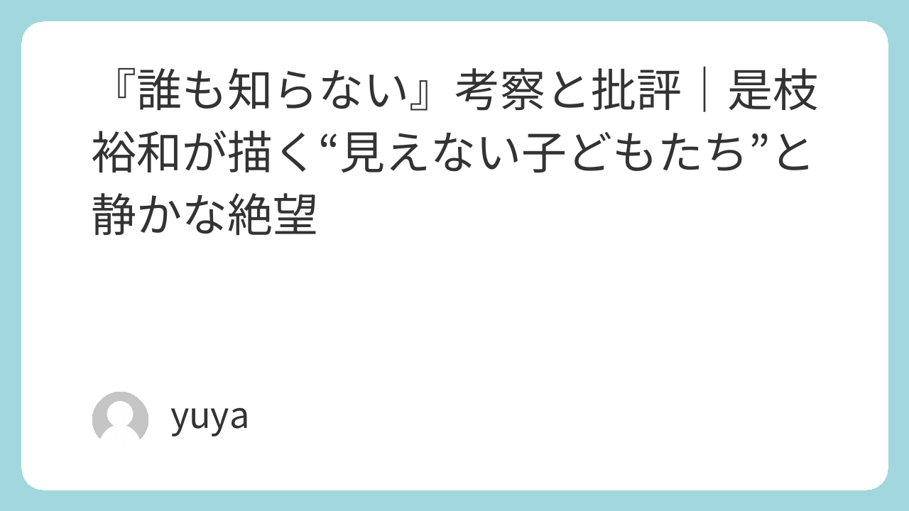本記事では、以下の5つの視点から『誰も知らない』を掘り下げ、考察と批評を交えて読み解いていきます。