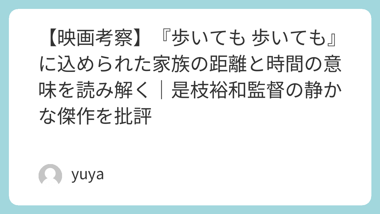 『歩いても 歩いても』は、劇的な出来事のない一日を描くことで、人間関係の本質や、家族というものの複雑さ、そして人生の切なさを浮き彫りにする名作です。観終わったあと、きっと誰もが「自分の家族」を思い浮かべ、どこか胸が詰まるような余韻を抱えることでしょう。