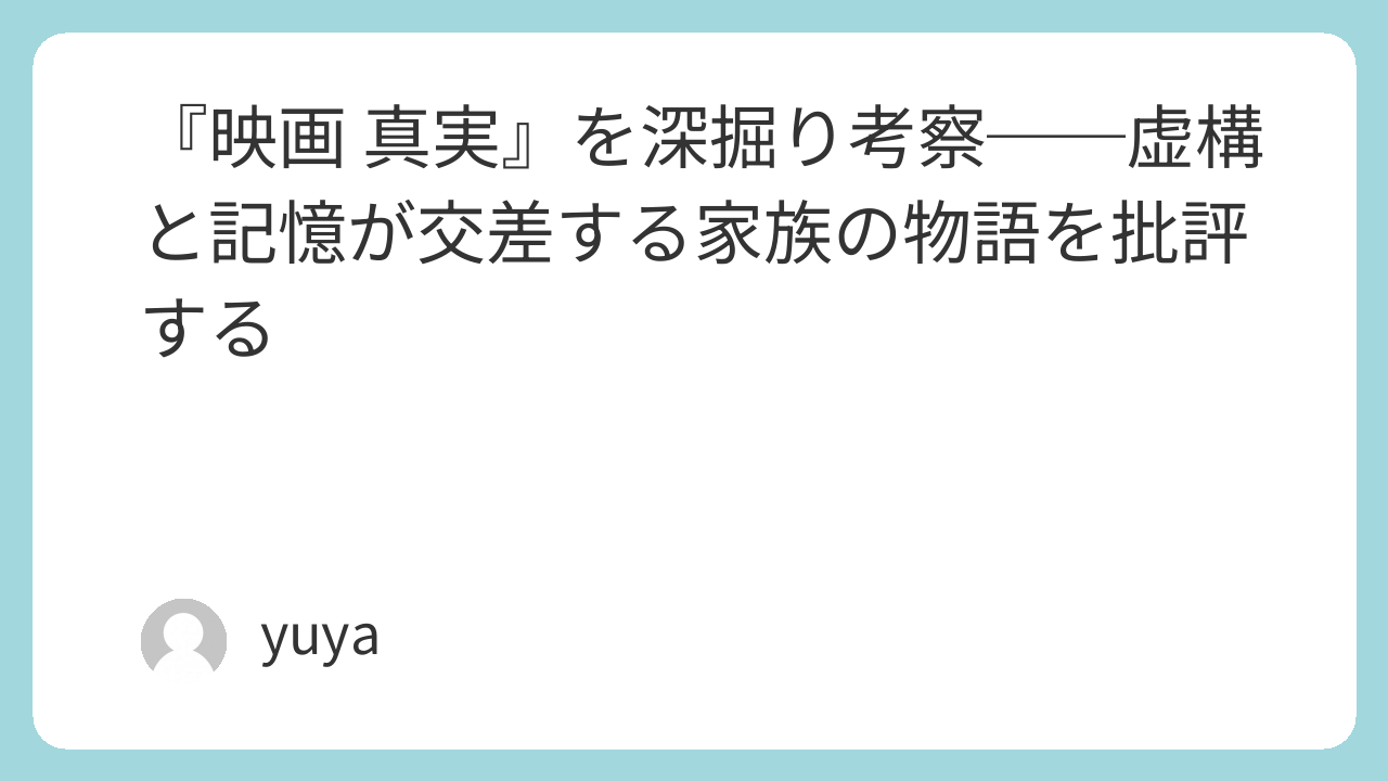 映画『真実』は、単なる家族ドラマにとどまらず、「記憶の不確かさ」「語りの主観性」「虚構と現実の曖昧な境界」を通じて、観客に“真実とは何か”という根源的な問いを投げかけます。緻密な演出とメタ的構造により、深く考察する価値のある一作であり、映画批評・映画考察の対象として非常に豊かなテキストを提供してくれる作品です。