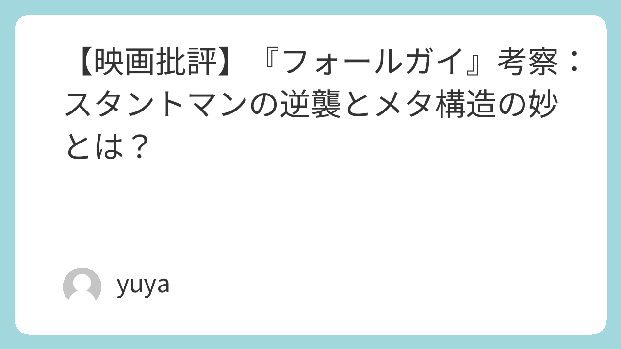 『フォールガイ』は、表舞台に立たない者たちの物語を、エンターテインメントとして痛快に描き切ったメタ映画である。