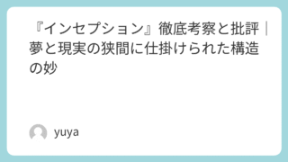 『インセプション』徹底考察と批評|夢と現実の狭間に仕掛けられた構造の妙 クリストファー・ノーラン監督による『インセプション』は、夢の中の世界を舞台にした極めて知的なSFサスペンスです。本作は、観る者に複雑なプロットと深い心理描写を突きつけながら、映像美と緻密な構成で映画的快感を提供してくれます。一方で、その複雑... 2025.09.13 Uncategorized