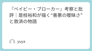『ベイビー・ブローカー』考察と批評|是枝裕和が描く“善悪の曖昧さ”と救済の物語 是枝裕和監督が韓国で撮影し、カンヌ国際映画祭で男優賞を受賞したことで話題となった映画『ベイビー・ブローカー』。赤ちゃんポストを巡る人身売買というセンシティブなテーマを軸に、登場人物たちの葛藤や人間性を丁寧に描き出した本作は、鑑賞後に深い余韻... 2025.09.29 Uncategorized