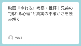 映画『ゆれる』考察・批評|兄弟の“揺れる心理”と真実の不確かさを読み解く 西川美和監督による2006年の映画『ゆれる』は、兄弟間の微妙な心理、家族の機能不全、そして真実とは何かを問う、極めて人間的なドラマです。その物語の深さ、登場人物たちの複雑な感情、演出の巧妙さが相まって、観る者に多くの余韻と問いを残します。本... 2025.09.29 Uncategorized