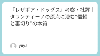 『レザボア・ドッグス』考察・批評|タランティーノの原点に潜む“信頼と裏切り”の本質 クエンティン・タランティーノ監督の長編デビュー作『レザボア・ドッグス』(1992年)は、そのスタイリッシュな暴力描写やテンポの良い会話劇、緻密な構成で映画ファンから絶大な支持を受けています。一見するとギャング映画、犯罪映画のジャンルに収まる... 2025.09.30 Uncategorized