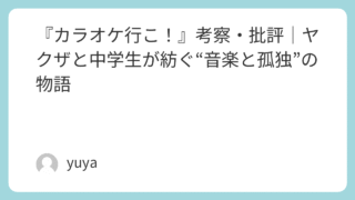 『カラオケ行こ!』考察・批評|ヤクザと中学生が紡ぐ“音楽と孤独”の物語 2024年に公開された映画『カラオケ行こ!』は、和山やまによる同名漫画を原作とし、ヤクザと中学生という一見ミスマッチなふたりが「歌」で繋がる異色の青春映画です。一見するとコミカルな設定とストーリー展開が目を引きますが、その内側には、年齢や立... 2025.09.30 Uncategorized