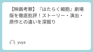 【映画考察】『はたらく細胞』劇場版を徹底批評!ストーリー・演出・原作との違いを深掘り 『はたらく細胞』は、体内の細胞たちを擬人化し、免疫や感染、日常の身体機能をアニメーションでわかりやすく描いたことで話題となった人気シリーズ。その劇場版となる本作では、アニメや漫画のファンのみならず、医療・教育の分野でも注目を集めています。し... 2025.09.30 Uncategorized