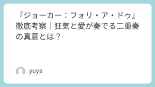 『ジョーカー:フォリ・ア・ドゥ』徹底考察|狂気と愛が奏でる二重奏の真意とは? 2019年に公開された映画『ジョーカー』は、アメコミ原作作品でありながら圧倒的な芸術性と心理描写で世界中を魅了しました。そして2025年、その続編として登場したのが『ジョーカー:フォリ・ア・ドゥ』です。本作では、前作以上に「狂気」そのものが... 2025.09.30 Uncategorized