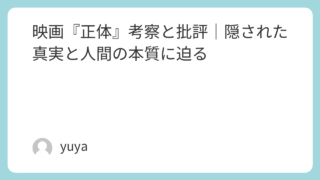 映画『正体』考察と批評|隠された真実と人間の本質に迫る 現代の映画において、「正体」がキーワードとなる作品は多く存在します。とりわけサスペンスやミステリー、ヒューマンドラマにおいては、「人間の本質」や「見えているものの裏側」に迫ることが大きなテーマとなっています。この記事では、映画『正体』を題材... 2025.09.30 Uncategorized