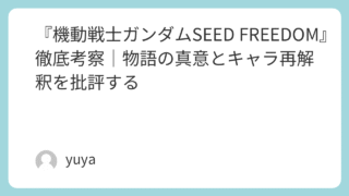 『機動戦士ガンダムSEED FREEDOM』徹底考察|物語の真意とキャラ再解釈を批評する 2024年に公開された映画『機動戦士ガンダムSEED FREEDOM』は、長年にわたりファンの間で待望されてきた『SEED』シリーズの完結編です。本作は、テレビシリーズ『機動戦士ガンダムSEED』『同 DESTINY』の延長線上に位置しつつ... 2025.09.30 Uncategorized