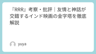『RRR』考察・批評|友情と神話が交錯するインド映画の金字塔を徹底解説 2022年に公開され、世界中の映画ファンを熱狂させたインド映画『RRR』。アクション映画としてのスケール、圧倒的な演出、そして友情と闘争を描くドラマ性において高く評価され、アカデミー賞受賞をはじめとした数々の賞に輝きました。しかし、この作品... 2025.09.25 Uncategorized