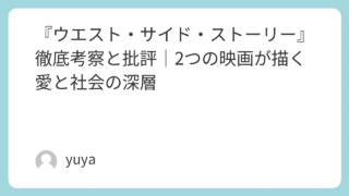 『ウエスト・サイド・ストーリー』徹底考察と批評|2つの映画が描く愛と社会の深層 ミュージカル映画の金字塔『ウエスト・サイド・ストーリー』。1961年のオリジナル映画版に加え、2021年にはスティーブン・スピルバーグ監督によるリメイクも公開され、再びその芸術性と社会的メッセージが注目を集めています。本記事では、両作品を比... 2025.09.25 Uncategorized