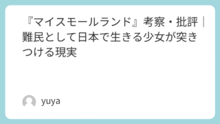 『マイスモールランド』考察・批評|難民として日本で生きる少女が突きつける現実 2022年に公開された川和田恵真監督の『マイスモールランド』は、在日クルド人の少女・サーリャの視点を通して、難民問題やアイデンティティの揺らぎを描いた作品です。日本映画としては珍しく、移民・難民の現状を真正面から取り上げた本作は、多くの観客... 2025.09.25 Uncategorized