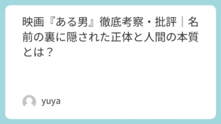 映画『ある男』徹底考察・批評|名前の裏に隠された正体と人間の本質とは? 石川慶監督による映画『ある男』は、平野啓一郎の同名小説を原作に、ひとりの男の“名前”と“人生”の真相を巡る心理サスペンスです。一見ミステリーのようでありながら、その本質は、現代社会における「他者理解」や「アイデンティティ」、「家族とは何か」... 2025.09.26 Uncategorized