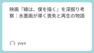 映画『線は、僕を描く』を深掘り考察|水墨画が導く喪失と再生の物語 水墨画を題材とした異色の青春映画『線は、僕を描く』。静謐で美しい映像と、喪失を抱えた青年の再生の物語が、多くの観客の心に深く染み込む作品となっています。一見地味ともいえる題材ながら、豊かな感情表現や芸術の持つ力を丁寧に描き出すこの映画は、繊... 2025.09.26 Uncategorized
