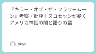 『キラー・オブ・ザ・フラワームーン』考察・批評|スコセッシが暴くアメリカ神話の闇と語りの罠 マーティン・スコセッシ監督が手がけた2023年の大作映画『キラー・オブ・ザ・フラワームーン』は、単なる犯罪ドラマではありません。1920年代、オクラホマ州で実際に起きたオーセージ族連続殺人事件という史実を元に、アメリカという国家の構造的暴力... 2025.09.26 Uncategorized