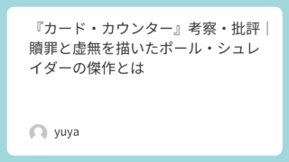 『カード・カウンター』考察・批評|贖罪と虚無を描いたポール・シュレイダーの傑作とは ポール・シュレイダー監督による映画『カード・カウンター』は、一見するとギャンブルを題材にしたクライム・サスペンスのように見えるが、その実、深く重苦しい贖罪と復讐の物語である。シュレイダー自身が脚本を手がけた本作は、ポーカーテーブルの冷たい沈... 2025.09.26 Uncategorized
