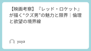 【映画考察】『レッド・ロケット』が描く“クズ男”の魅力と限界|倫理と欲望の境界線 アメリカの片田舎を舞台に、元ポルノ男優の“人生の再起”を描いたショーン・ベイカー監督の映画『レッド・ロケット』。本作は決してヒーロー然とした人物を描く作品ではなく、むしろ倫理的にギリギリな人物が主人公という大胆な構成です。しかし、それゆえに... 2025.09.26 Uncategorized