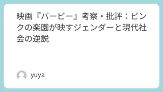 映画『バービー』考察・批評:ピンクの楽園が映すジェンダーと現代社会の逆説 2023年に公開された映画『バービー』は、単なるファッションドールの実写化ではありませんでした。ポップでキュートな世界観の奥には、現代社会の価値観に対する強烈な問いかけと、自己批判すら含むメタな視点が仕込まれています。本記事では、この映画が... 2025.09.28 Uncategorized