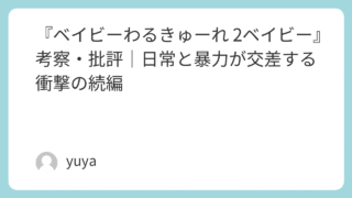 『ベイビーわるきゅーれ 2ベイビー』考察・批評|日常と暴力が交差する衝撃の続編 2021年に話題を呼んだ『ベイビーわるきゅーれ』の続編、『ベイビーわるきゅーれ 2ベイビー』が公開され、多くの映画ファン・アクション映画好き・映画批評家たちの間で議論を呼んでいます。本作は前作のユニークな設定とキャラクター性を引き継ぎつつ、... 2025.09.28 Uncategorized