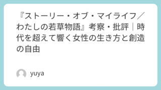『ストーリー・オブ・マイライフ/わたしの若草物語』考察・批評|時代を超えて響く女性の生き方と創造の自由 グレタ・ガーウィグ監督による映画『ストーリー・オブ・マイライフ/わたしの若草物語』は、ルイーザ・メイ・オルコットの名作『若草物語』を原作としながらも、その再構築の巧妙さと現代的メッセージ性により高い評価を得ています。本作はただの時代劇や青春... 2025.09.24 Uncategorized