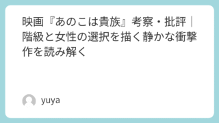 映画『あのこは貴族』考察・批評|階級と女性の選択を描く静かな衝撃作を読み解く 映画『あのこは貴族』(監督:岨手由貴子、原作:山内マリコ)は、東京を舞台に異なる階層に生きる二人の女性――華子と美紀――の人生が交差することで、「家」「結婚」「自由」といったテーマに鋭く切り込む作品です。2021年公開ながら、現代社会の女性... 2025.09.25 Uncategorized