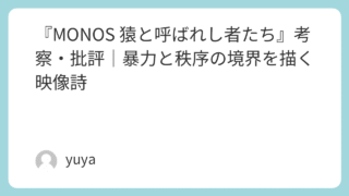 『MONOS 猿と呼ばれし者たち』考察・批評|暴力と秩序の境界を描く映像詩 南米の高原とジャングルを舞台に描かれる、少年兵たちの閉ざされた世界。 映画『MONOS 猿と呼ばれし者たち』(2019)は、アレハンドロ・ランデス監督による衝撃的な作品です。本作はジャンル映画の枠を超え、寓話的な世界観と詩的な映像美で世界中... 2025.09.25 Uncategorized