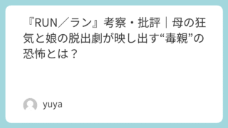 『RUN/ラン』考察・批評|母の狂気と娘の脱出劇が映し出す“毒親”の恐怖とは? 2020年に公開された映画『RUN/ラン』は、サラ・ポールソン演じる“母親”と、車椅子の娘クロエの密室的な関係性を描いたサイコスリラーです。派手な演出よりも緊張感に満ちた心理描写を重視した本作は、アメリカだけでなく日本でも「毒親」や「過保護... 2025.09.25 Uncategorized