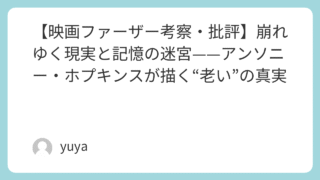【映画ファーザー考察・批評】崩れゆく現実と記憶の迷宮——アンソニー・ホプキンスが描く“老い”の真実 映画『ファーザー』(原題:The Father)は、2020年に公開され、第93回アカデミー賞で主演男優賞(アンソニー・ホプキンス)と脚色賞を受賞した注目作です。本作は認知症の高齢男性の視点を通じて、「記憶の崩壊」と「現実認識の揺らぎ」を観... 2025.09.25 Uncategorized