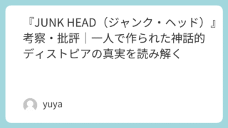 『JUNK HEAD(ジャンク・ヘッド)』考察・批評|一人で作られた神話的ディストピアの真実を読み解く 近未来ディストピアと異形の生命体、そして“たった一人”の手によって生み出された驚異的なストップモーションアニメ『JUNK HEAD』。本作は、観る者の想像力を激しく揺さぶり、静かに深い余韻を残します。この記事では、映画『ジャンク・ヘッド』に... 2025.09.25 Uncategorized