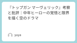 『トップガン マーヴェリック』考察と批評|中年ヒーローの覚悟と限界を描く空のドラマ 2022年に公開され、世界中で大ヒットを記録した『トップガン マーヴェリック』。前作『トップガン』(1986年)の公開から実に36年という時を経て続編が制作されたことは、映画史的にも異例中の異例です。本記事では、物語の構造やキャラクター造形... 2025.09.25 Uncategorized