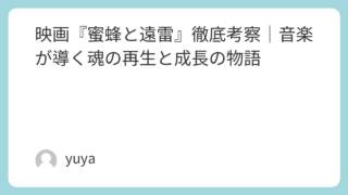 映画『蜜蜂と遠雷』徹底考察|音楽が導く魂の再生と成長の物語 音楽を題材にした作品には、往々にして言葉では伝えきれない「体験」があります。恩田陸の直木賞&本屋大賞W受賞作を原作に、2019年に映画化された『蜜蜂と遠雷』は、その「体験」を映像と音で再現しようとした意欲作です。本記事では、映画版の表現、登... 2025.09.23 Uncategorized