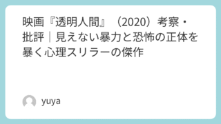 映画『透明人間』(2020)考察・批評|見えない暴力と恐怖の正体を暴く心理スリラーの傑作 近年のリブート映画の中でも、ひときわ強烈な印象を残した作品が、2020年公開の映画『透明人間(The Invisible Man)』です。本作はH.G.ウェルズの古典SFを基にしながらも、現代的なテーマとサスペンス構造に大胆に再構成され、多... 2025.09.24 Uncategorized