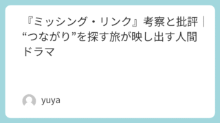 『ミッシング・リンク』考察と批評|“つながり”を探す旅が映し出す人間ドラマ 2019年に公開されたストップモーションアニメーション映画『ミッシング・リンク』は、『コララインとボタンの魔女』や『KUBO/クボ 二本の弦の秘密』などで知られるライカスタジオによる意欲作です。本作はアカデミー賞長編アニメ映画賞にノミネート... 2025.09.24 Uncategorized