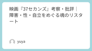 映画『37セカンズ』考察・批評|障害・性・自立をめぐる魂のリスタート 「映画 37セカンズ 考察 批評」というキーワードで検索される方の多くは、この作品がただの障害者映画ではなく、“人間そのもの”を描いた深い作品であることに惹かれているのではないでしょうか。本記事では、『37セカンズ』という作品を通して描かれ... 2025.09.24 Uncategorized
