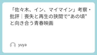 「佐々木、イン、マイマイン」考察・批評|喪失と再生の狭間で“あの頃”と向き合う青春映画 『佐々木、イン、マイマイン』は、2020年に公開された内山拓也監督による日本映画で、藤原季節の主演と企画によって生まれた作品です。一見、青春の一場面を切り取ったようなストーリーに見える本作ですが、内包するテーマは非常に多層的で、喪失感・再生... 2025.09.24 Uncategorized