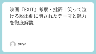 映画『EXIT』考察・批評|笑って泣ける脱出劇に隠されたテーマと魅力を徹底解説 韓国映画『EXIT』は、災害映画でありながらユーモアを交えた独特の作風で、多くの観客の心を掴んだ話題作です。「命からがら逃げる」サバイバル要素に加え、「自分の人生からも脱出したい」と感じている現代人の心情に寄り添うメッセージ性も注目されてい... 2025.09.24 Uncategorized